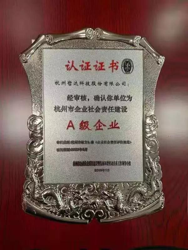 近日,2018年度杭州市企業(yè)社會責任建設(shè)最佳企業(yè)評選結(jié)果出爐,10家企業(yè)在眾多參評企業(yè)中脫穎而出,獲評社會責任建設(shè)最佳企業(yè),我哲達科技榜上有名,并同時榮獲杭州市2018年度企業(yè)社會責任建設(shè)A級企業(yè)!