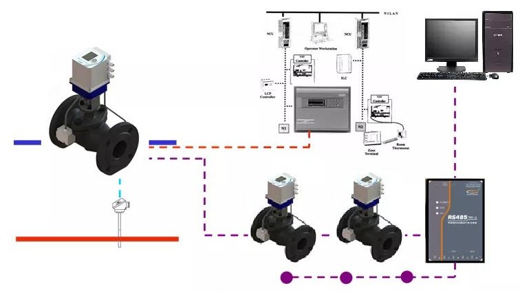 智慧閥門產(chǎn)品自身具備流量、溫度以及積分等功能,可直接測量計算出管道內(nèi)的熱量或冷量,并通過自帶的通訊協(xié)議將數(shù)據(jù)傳輸至能源管理系統(tǒng),在保證精度與可靠性、降低成本的同時,有效提升能源管控的數(shù)智化水平。
