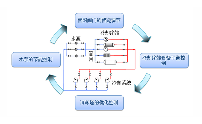系統(tǒng)利用ZETA自主研發(fā)的WECS循環(huán)水系統(tǒng)綜合節(jié)能優(yōu)化運行技術(shù),集成先進的節(jié)能控制方法并結(jié)合智慧閥門、智慧能源、工業(yè)變頻等技術(shù),對循環(huán)水系統(tǒng)各單元優(yōu)化控制,提高整體能效水平。