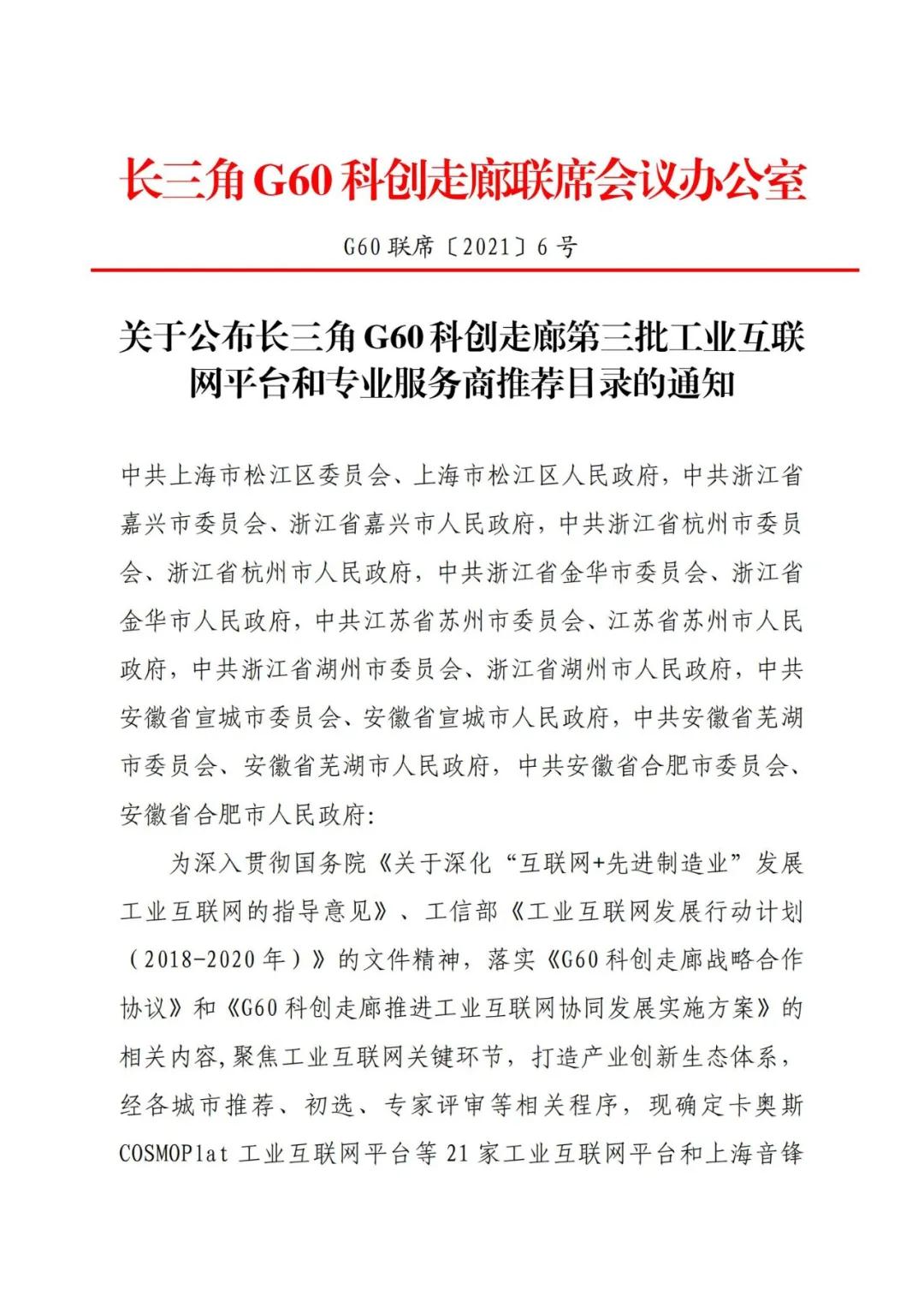 長三角G60科創(chuàng)走廊工業(yè)互聯(lián)網(wǎng)平臺