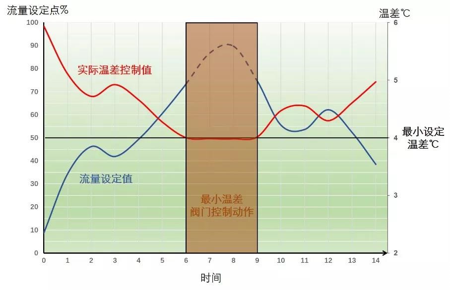 此外,在智慧閥門的使用過程中,當(dāng)所控設(shè)備的溫差下降至設(shè)定值之下,將觸發(fā)最小溫差/能量限制程序,阻止溫差進(jìn)一步下降,避免大流量小溫差現(xiàn)象的發(fā)生,進(jìn)一步節(jié)省能源費用,有效實現(xiàn)系統(tǒng)的智能化管控。