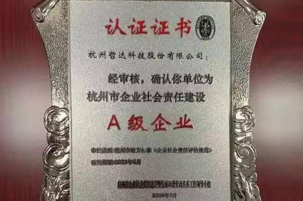 哲達(dá)科技榮獲杭州市社會責(zé)任建設(shè)最佳企業(yè)